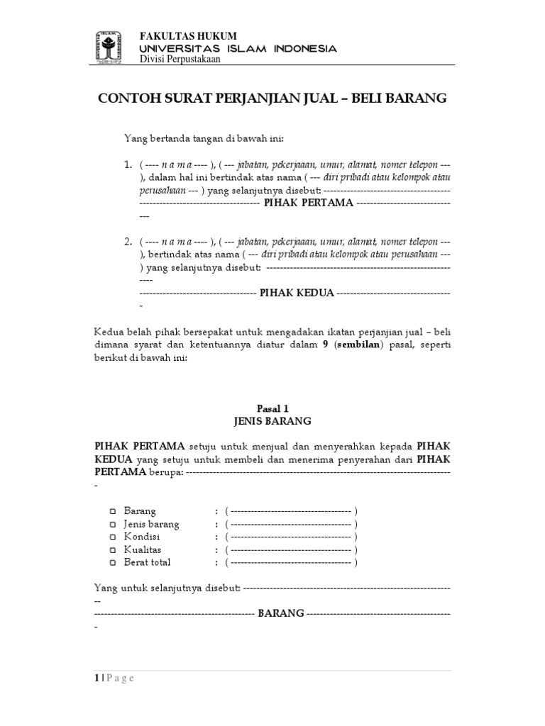 Contoh Surat Perjanjian Jual Beli Pdf
